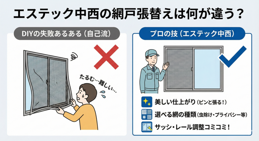 エステック中西の「網戸張替え」は何が違う?