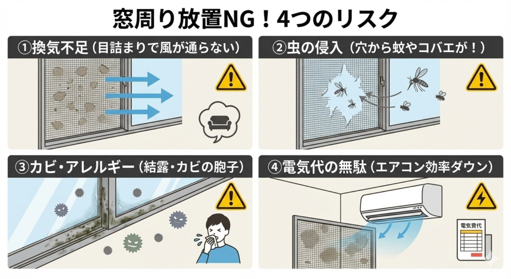 しかし、窓周りを放置することには、これだけのリスクがあります。