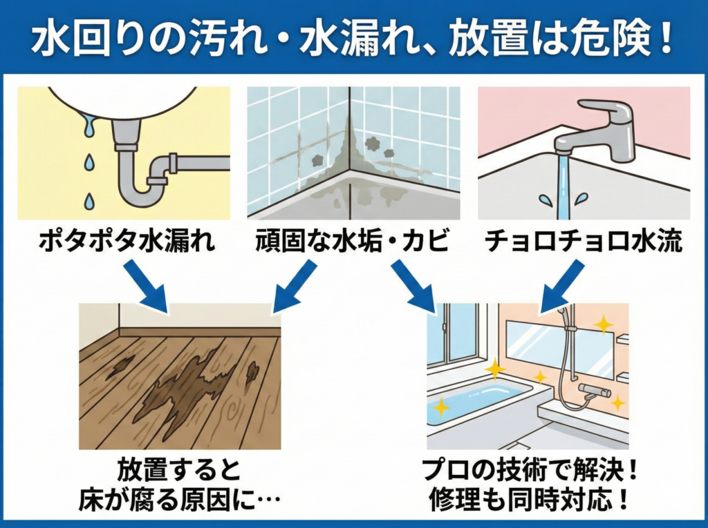 水回りの汚れや不具合は、放置すればするほど状況が悪化します。