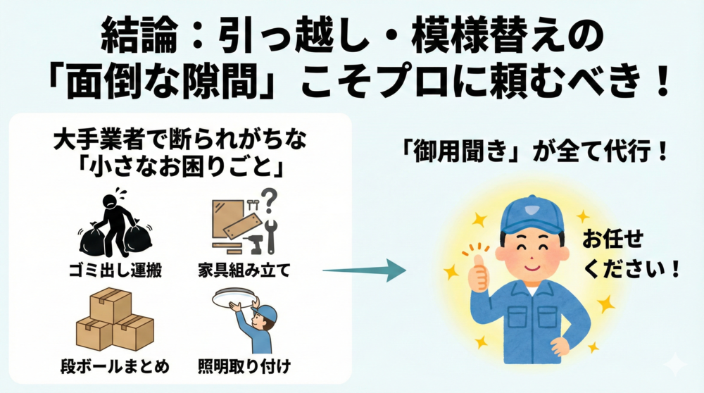 結論:引っ越し・模様替えの「面倒な隙間」こそプロに頼むべき!