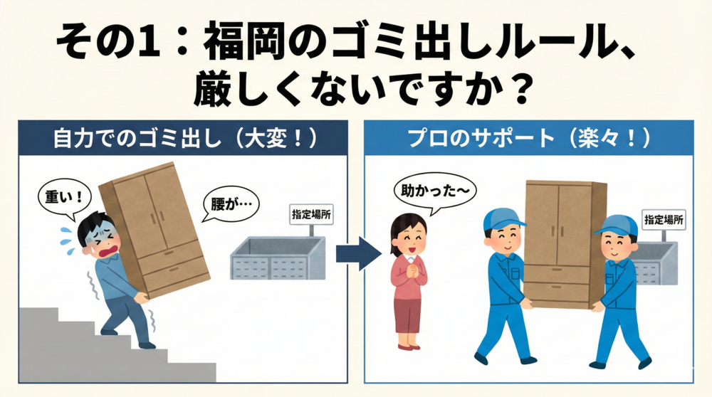 福岡のゴミ出しルールは、しっかり整備されている分、急な引っ越しや大量処分には少々ハードルが高いときがありますよね。
